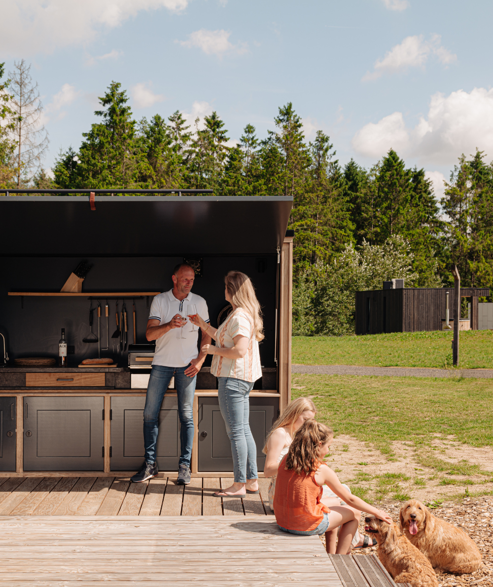 Im Resort de Parel finden Sie Lodges, die Sie sonst nirgendwo treffen. Schauen Sie sich zum Beispiel unsere kulinarischen Unterkünfte an, in denen Sie eine voll ausgestattete Außenküche mit Kamado-Grill, Spüle, großzügiger Arbeitsplatte, Kühlschrank und Steckdose haben. Bereiten Sie Ihre Lieblingsgerichte mitten in der Natur zu. Wir wetten, der Sternekoch in Ihnen wird erwachen. Ein herrlicher Ort, um einen kulinarischen Urlaub in den Niederlanden zu genießen.